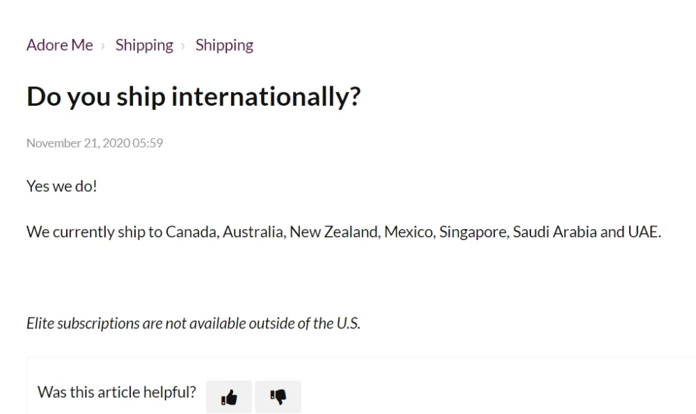 Adore Me International Shipping Knoji